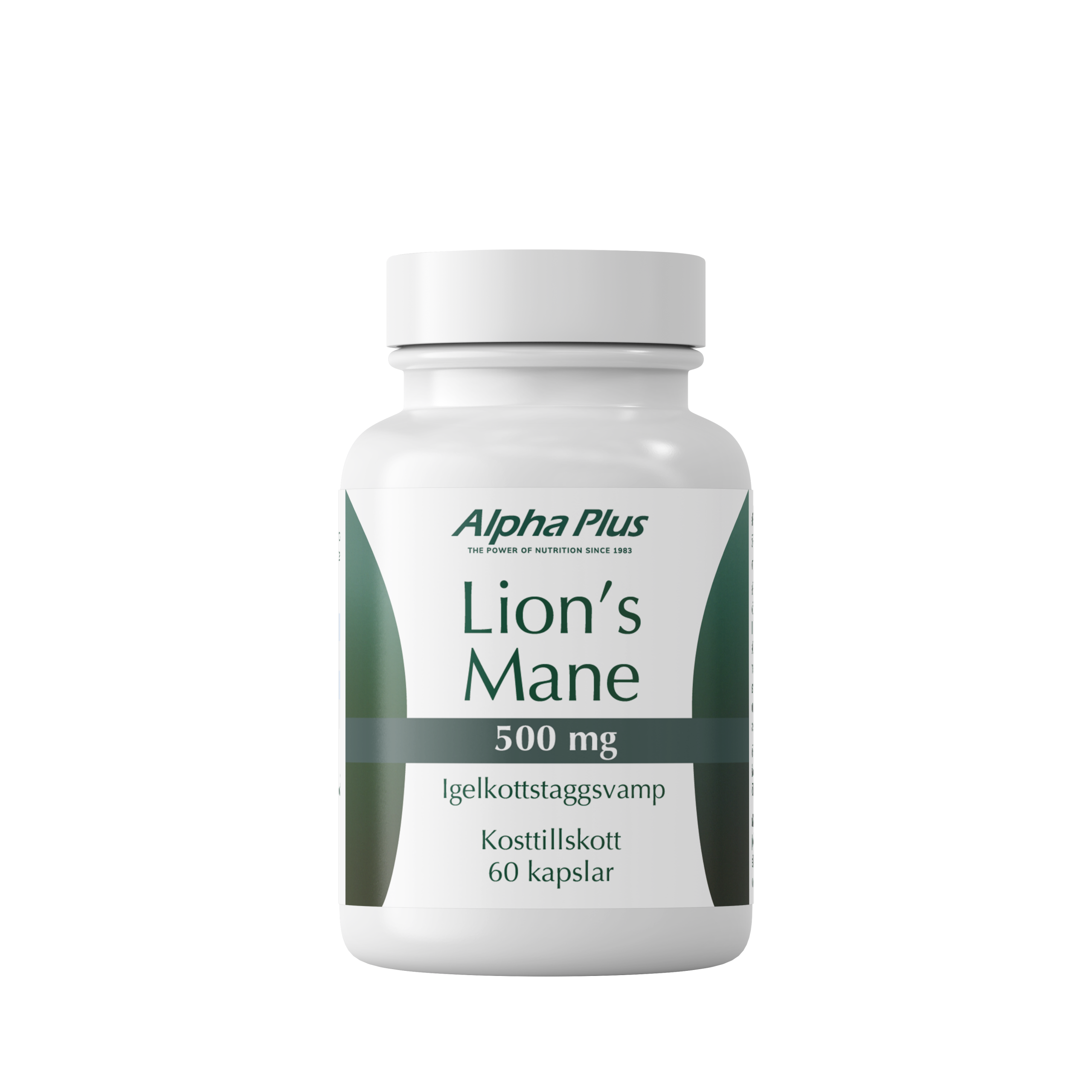 Igelkottstaggsvampextrakt 15:1 (Hericium erinaceus), kapsel (veg. hydroxypropylmetylcellulosa), MCT-oljepulver (mediumkedjade triglycerider från kokosnöt).